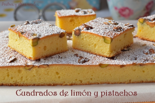 Estos Cuadrados de limón y pistachos son el complemento ideal para acompañar al café o té de media tarde.