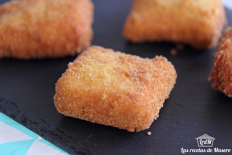 La receta original dice que los dejemos en la nevera media hora, yo prefiero dejarlos en el congelador de un día para otro para asegurarme que no se desmoronar al freírlos.