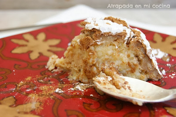 Toda la vida viviendo en la provincia de Granada, cinco años viviendo en Granada capital, y yo sin conocer un dulce tan típico de estas fechas. La razón es tan sencilla como que yo no soy nada golosa y nunca me he fijado en los escaparates de pastelería o confitería. Aunque ahora con el blog intento no dejarme ningún dulce sin preparar, y menos si es típico, y más si es de Granada. El año pasado fue cuando descubrí esta cuajada de Carnaval, en el blog de mi amiga Ana María. Encontré con facilidad el lebrillo de cerámica granadino con el que hacerlo (no tan bonito como el de ella, pero bueno), superé el escollo de ponerle cabello de ángel a un postre y el resultado, sorprendente. Cuando iba leyendo los ingredientes pensaba que iba a quedar pesado el postre, y la verdad es que para comerse en cacharrito no es, pero si que apetece tomarse un buen trocito. La crema de almendras que lleva es exquisita, y combinado con la pasta de mantecados (he puesto los bollitos glaseados de Hacendado, también los comercializan Reglero) y con el cabello de ángel, rematado con la canela y azúcar glass, es un delicioso pecado.