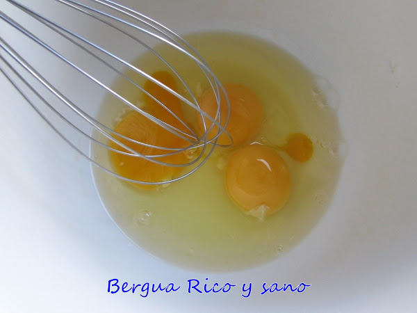 3. Batimos los huevos y los mezclamos bien a mano con la mezcla de los pimientos.