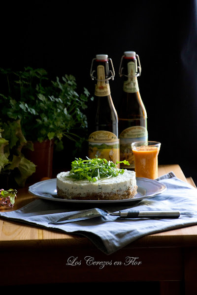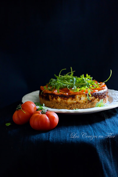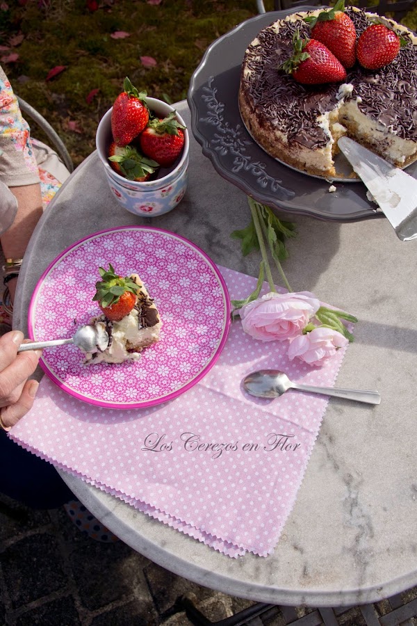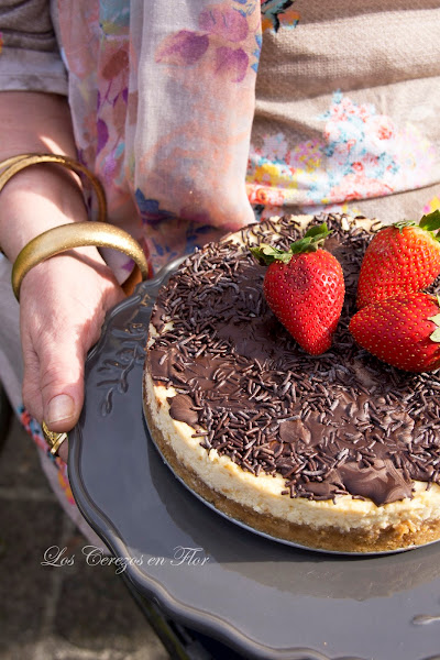 Cuando voy a un restaurante y me ofrecen la carta mis ojos van directos a la lista de postres y si tienen cheesecake yo ya soy feliz. Me apasiona, me da igual que sean horneadas, frías y cuajadas con gelatina, que lleven frutos rojos, cítricos o chocolate... me gustan tanto que lo comería de entrante, de primer plato y de segundo. Se nota que me mola verdad? El queso me pierde, ya sea a palo seco, en forma de pastel, como integrante de un strudel, como complemento, a la plancha, fundido, con membrillo o con uvas que como dice la sabiduría popular saben a beso mhmmmmmm. El otro día leyendo el periódico por poco no me muero de un ataque de risa, un estudio demostraba que los amantes de los quesos hacían mucho más el amor jajajajajaja...y yo viviendo en Suiza jajajajaja ya decía yo que tanto ruido por la noche se debía a algo!!!El estudio hacía distinciones entre los que lo comían caliente o fundido y los que lo hacen a palo seco. Resulta que si tú eres de los que prefieren el queso calentito, además de ser una persona más solidaria y aventurera, lo que viene siendo buena gente, además practicáis sexo 6 veces más que los que lo tomáis a temperatura ambiente jajajajajajaja, ahora a todos os mola la fondue no???? Endebé lo que son los estudios!!! Y todos tirándose de cabeza a la pastilla azul para cumplir con la parienta cuando resulta que tomarse una raclette puede suponer una segunda luna de miel y encima tirada de precio!! jajajajaja, vamos a dejar el tema porque esto está tomando un cariz un poco verde jajajaja. Aprovechando que éste mes me tocaba a mí elegir receta me dije que era la mía para probar nuevas recetas de pasteles de queso. Para ser sincera es que me compré un libro en Italia de Cheesecakes y quería ver que tal resultaba. Hoy he hecho dos de ese recopilatorio y lo cierto es que son una delicia. Una es de tomate, aunque le he dado mi toque personal, y la otra es de queso gorgonzola...esperar un momento que estoy salivando y me voy a electrocutar con el ordenador como no me limpie jajajaja, Es recordarlo y ya babeo!! La primera dulce es una de mis recetas preferidas, es adictiva, buenísima, esta vez la he preparado con peras caramelizadas y un caramelo a la sal que le han dado el toque para crear el Cheesecake 10!. Y la segunda receta dulce es un regalo que me ha llegado de manos de mi querida amiga Cheryl. Ella es de Sudáfrica, su hijo es uno de los mejores amigos de mi hija, siempre están jugando ya sea en mi casa o en la suya y mientras, nosotras dos pasamos unas tardes de lo más entretenidas charlando, riendo y explicándonos historias de nuestras vidas. Un día la pillé preparando un pastel de queso y olía su cocina a manjar divino. Cuando le dije que justamente tenía que prepararlas para éste mes, le faltó tiempo para darme un paquete de las galletas especiales que utilizan en su país para prepararla y me tradujo la receta del afrikáans al inglés. Resulta que en Ciudad del Cabo hay una pastelería- Cafetería dónde preparan ésta delicia, dice mi amiga que cuando pasas por la calle huele tanto y tan bien que es imposible no entrar y pedir un buen trozo. Aprovechando que mis padres están pasando unos días con nosotros en casa ( hacía más de seis meses que no los veíamos!) me dije que era la ocasión perfecta para prepararla y degustarla. Y los tengo como testigos que no miento que es un pastel para montarle un piso, comprarle un apartamento en la playa y llevártela de vacaciones, han alucinado, dicen que es la mejor tarta de queso que han comido en su vida! Ayer mientras hacía las fotos tuve que ponerles freno porque por poco me quedo sin una triste miga para retratarla. La receta original dice de dividir la masa de queso en dos y a una unirle cacao en polvo, de esa forma queda en dos capas, pero yo la he querido hacer como mi querida Cheryl, y unirle el chocolate por encima, con el frío queda una capa crujiente en la superficie que la hace aún más irresistible. También han probado las dos saladas y el jurado ha votado que la de tomate es sólo medio punto más buena que la de gorgonzola, pero que en la balanza se quedan con todas jajajaja, yo creo que les han encantado las tres. Lo bueno es que encima las hemos podido comer en el jardín disfrutando de un día de primavera maravilloso.