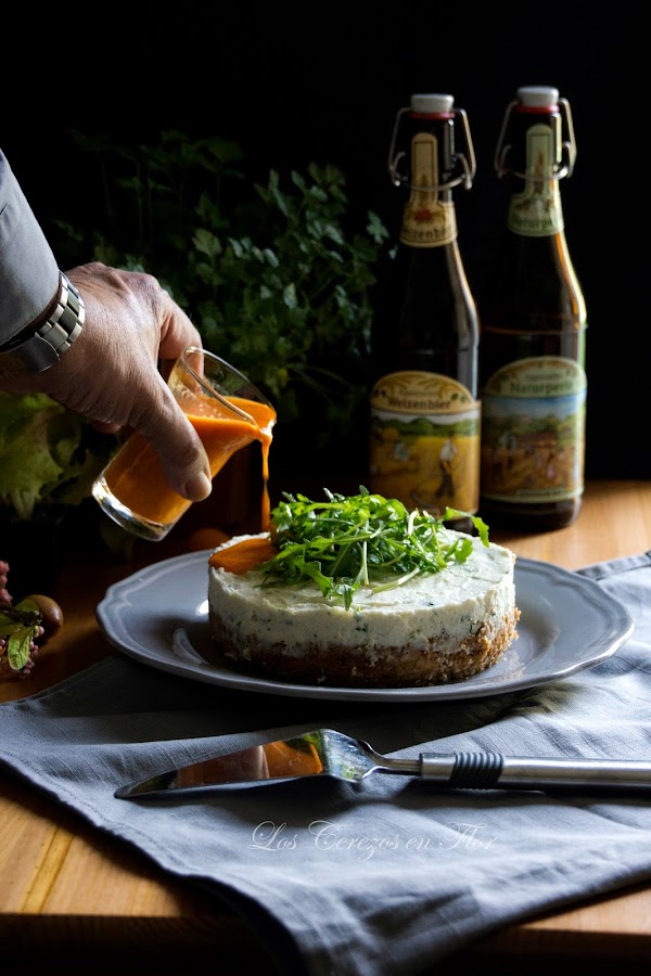 CHEESECAKE DE GORGONZOLA CON SALSA DE PIMIENTOS
