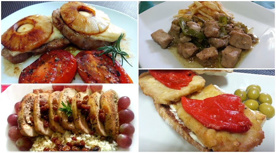 El lomo de cerdo suele ser una carne que queda seca. En este caso no será así. Los ingredientes principales serán el lomo, la piña, el queso, vino dulce y añadiremos al plato unos tomates. Para que quede jugosa, realizaremos una cocción lenta que iremos regando frecuentemente. Podemos verlo paso a paso en mi blog.