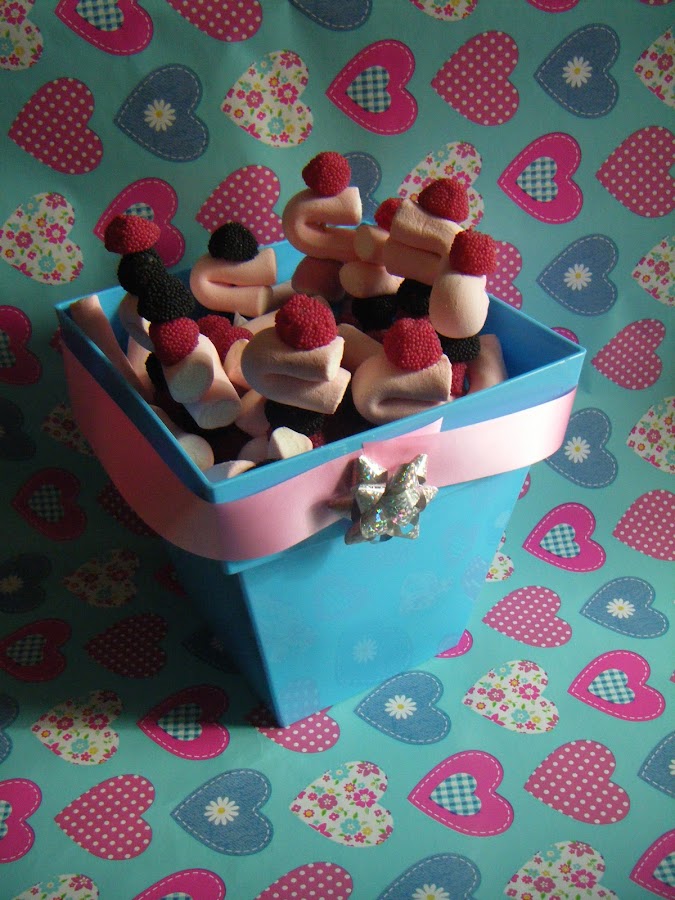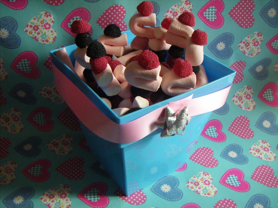 Aquí os dejo un cubito que le hice a mi sobrina para repartir chuches con los niños de su cole en el cumple. La verdad no tiene mucho misterio relleno de gominolas y nubes y además unas brochetas con chuches clavadas. La verdad que duro cinco minutos, así que fue un exito ::))