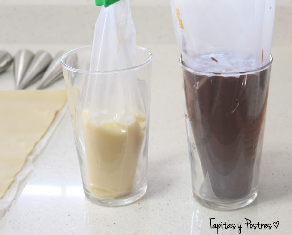 Ya tenemos las dos cremas guardadas en mangas pasteleras.