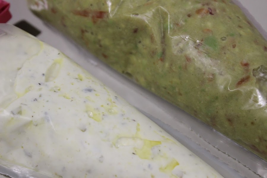 La base de la salsa tártara es la mayonesa, y lleva alcaparras y mostaza. La de la saltsiki es el yogur griego, con pepino. Yo hice un mix, con yogur griego, pepinillos pequeños, alcaparras, mostaza (muy poco), eneldo, aceite de oliva, limón y sal.