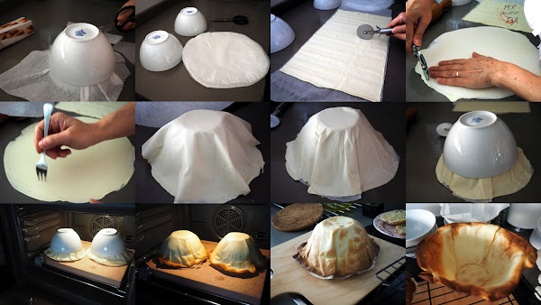 Cortar 4 círculos de papel de horno de diámetro suficiente para cubrir con holgura el bol.