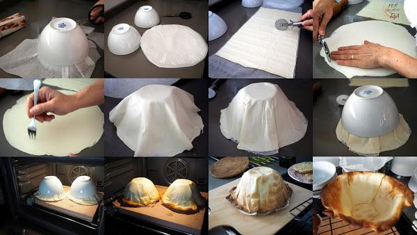 Introducir en el horno a 220º durante unos 15 minutos en total aproximadamente. A media cocción, cuando los bordes empiecen a dorar, retirar con cuidado (y protección para no quemarse) el bol superior y el primer papel de horno. Continuar la cocción hasta que la masa esté lista.