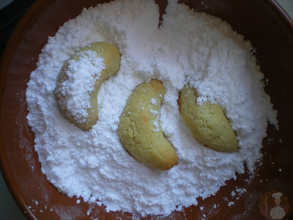 Sacar del horno y aún calientes, se rebozan con mimo en una mezcla de azúcar glas y azúcar avainillado. Dejar enfriar del todo.