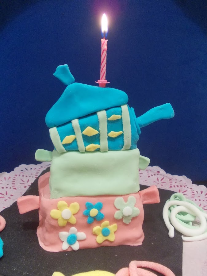Teñimos el fondant con los colores que más nos guste... la verdad que no nos han salido los colores que queríamos, para simular el logo de "Mis Caceroladas" pero lo hemos intentado jajajaja.