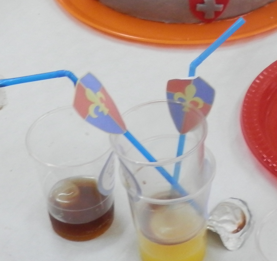 Aquí os pongo el detalle de como decoré las pajitas con escudos de caballeros.