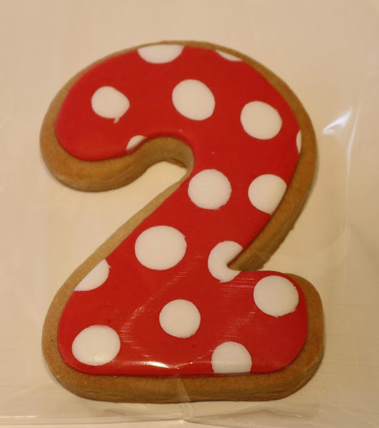 Galletas de mantequilla y vainilla, con su nombre, la inicial del mismo y el número 2.