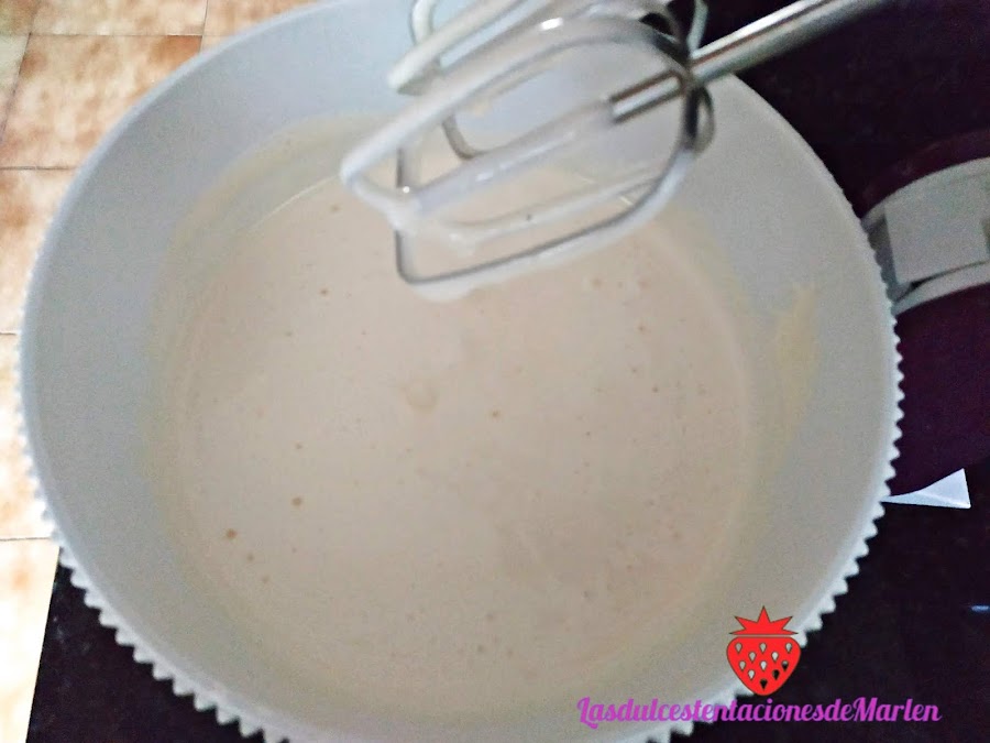Partimos los huevos, y separamos las claras de las yemas. Montamos las claras a punto de nieve, con varillas eléctricas.