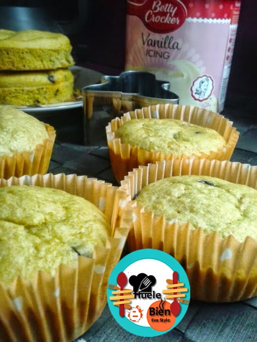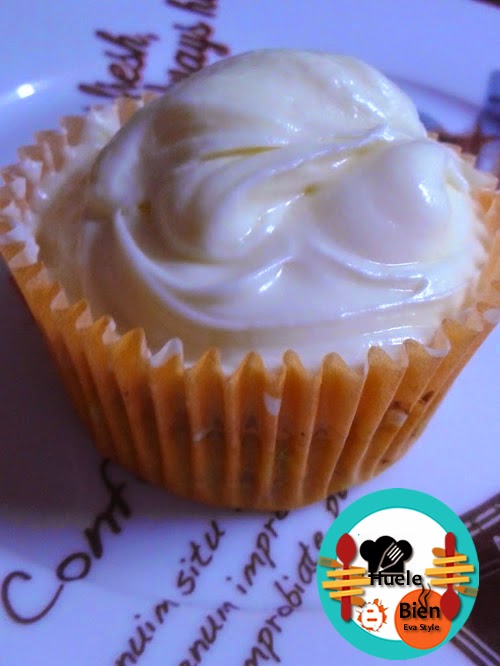 1.- Una vez estén hechos los cup cake y estén fríos. Los cubrimos con la crema de vainilla. No es necesario utilizar la manga pastelera. Simplemente ponemos unas cucharas y le vamos dando forma al caer sobre el pastelito.