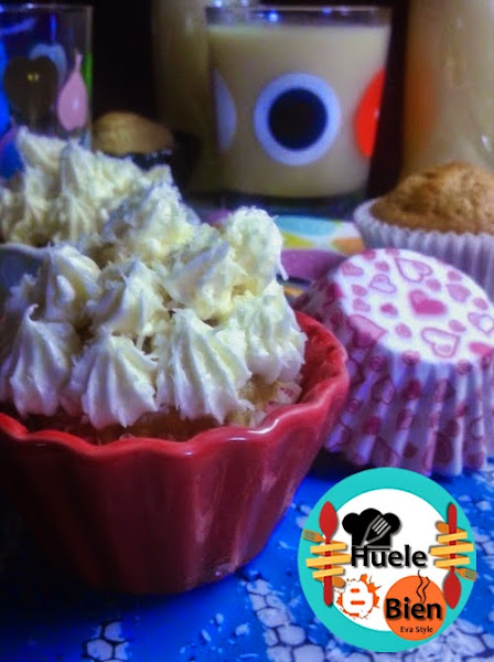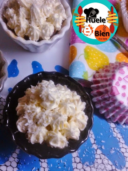 Así que me atreví a preparar estos cup cake con crema de margarina, azúcar glass y leche de coco.
