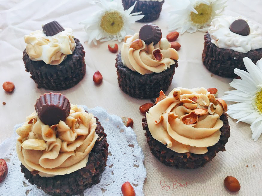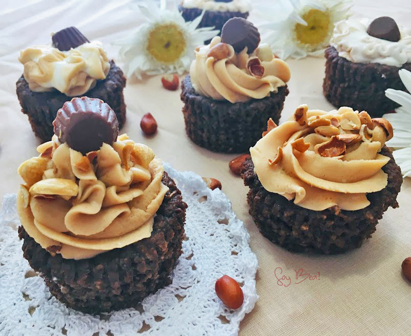 Decorar los cup cake con la crema, reese´s y cacahuates picados