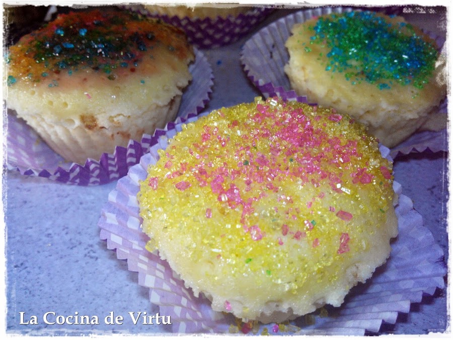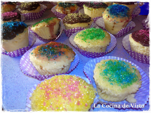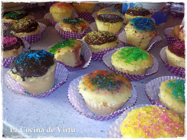 Este sábado he estado muy entretenida, una amiga y su marido tenían montada una improvisada guardería con sus sobrinas, y como les parecía poco (5 niñas) pues me avisaron para que me fuera con el peque. Como estaba el tiempo mal. Estuvimos en su casa. Las mas mayorcitas, querían hacer magdalenas, y como a mi no me gusta los berenjenales esos... pues nos pusimos a hacerlas...