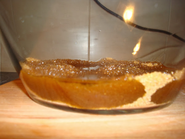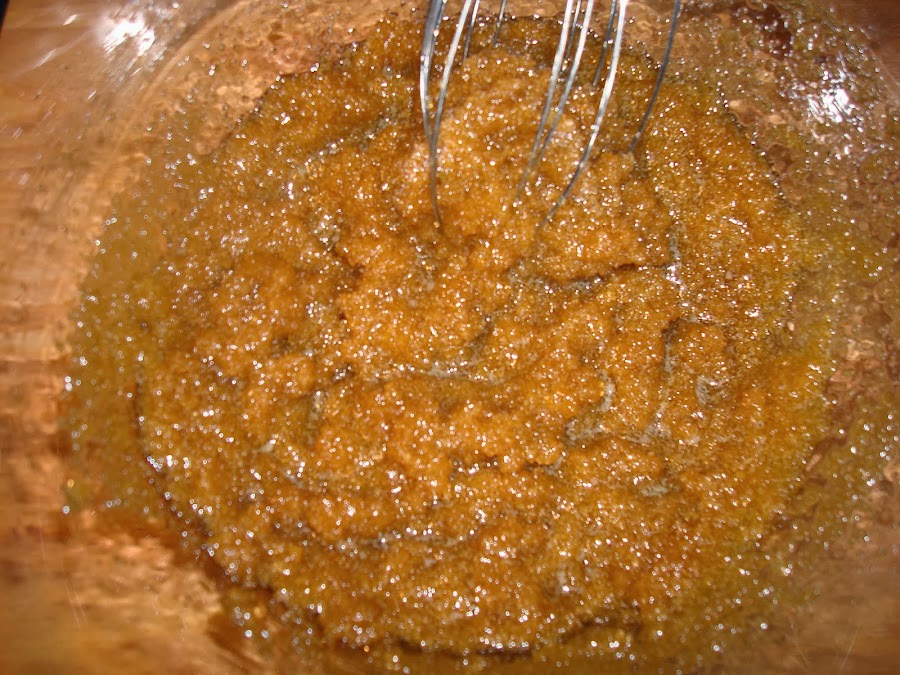 Batimos en un bol el azúcar moreno con el aceite de oliva.