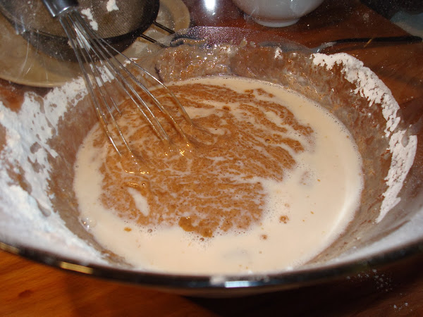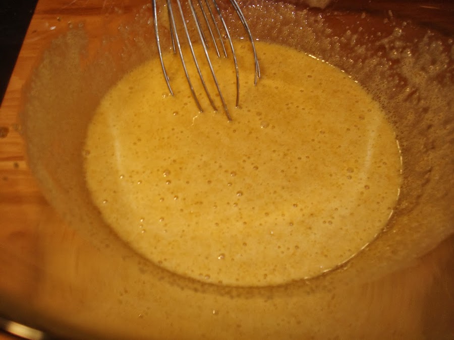 Vamos incorporando los 3 huevos de uno en uno y seguimos batiendo.....