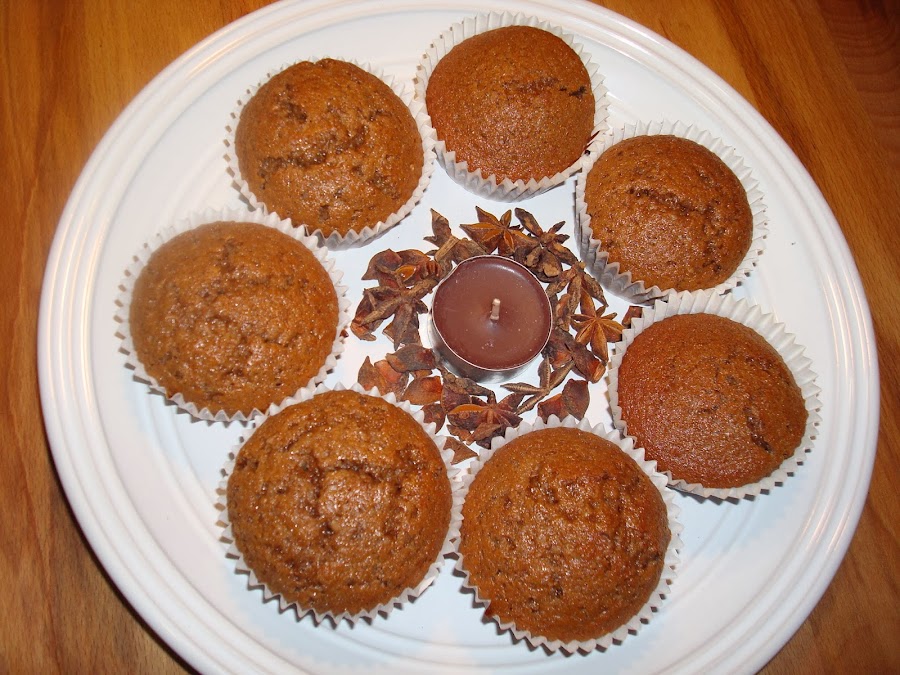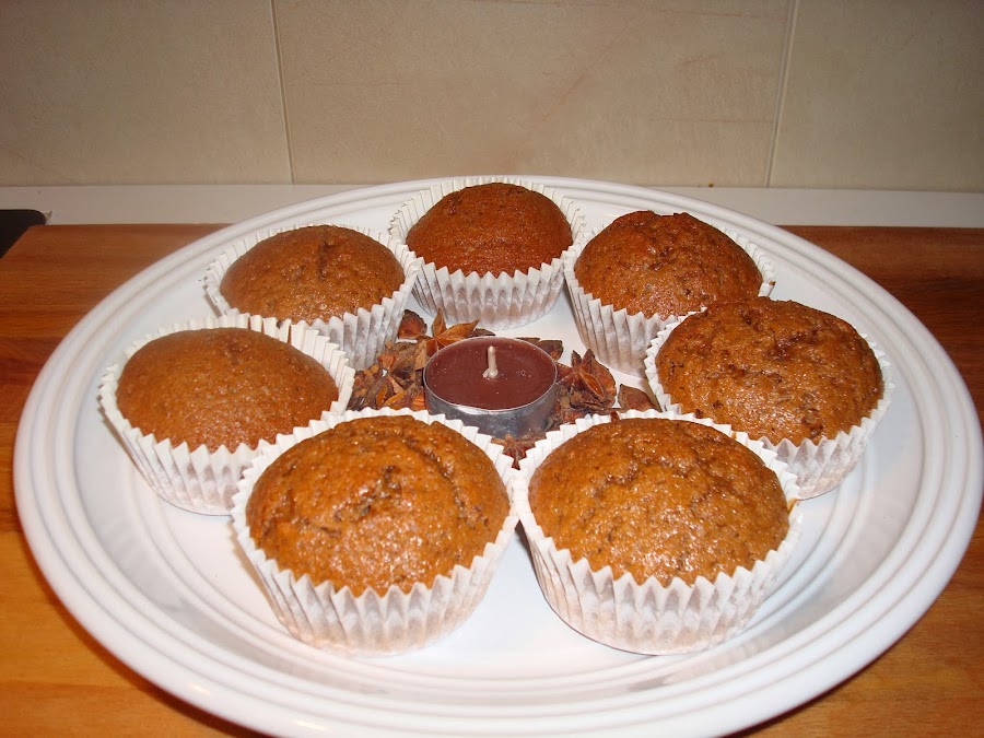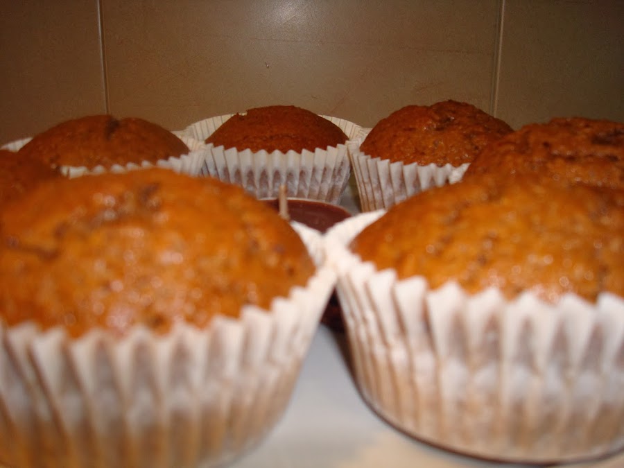 Como siempre al sacarlos del horno los dejamos en el molde 5 min antes de pasarlos a la rejilla para que enfríen. Como me gusta tanto la canela le he añadido un poco de canela en polvo en la masa.