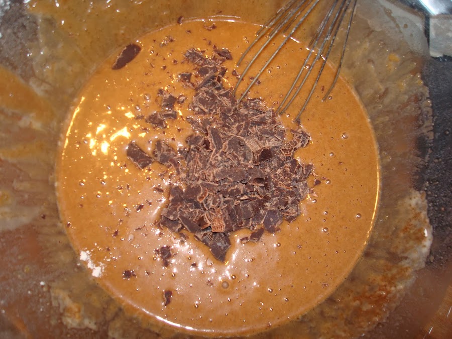 Lo siguiente que haremos será añadir la leche y la cucharadita de extracto de vainilla y los chips de chocolate.