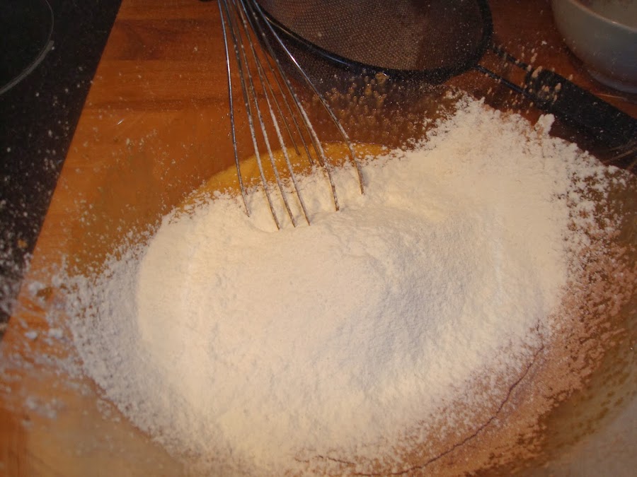 A continuación tamizamos la harina, la levadura y el cacao y lo vamos integrando poco a poco para que quede una masa homogénea.