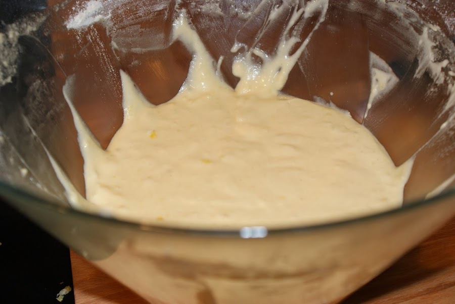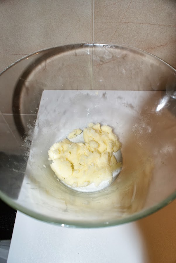 Batimos la mantequilla (a temperatura ambiente) y el azúcar hasta que este cremoso. Añadimos los huevos uno a uno par que se vaya integrando bien y el yogurt (remover con una cuchara antes de añadir para eliminar los grumos).