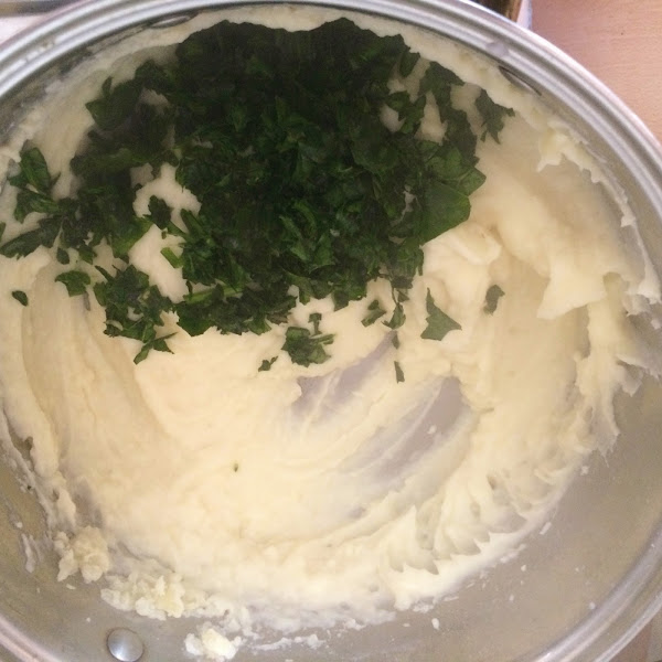 Sacar la mitad del puré y reservar. a la otra mitad de la olla agregar las espinacas y batir, Revolver con fuego alto para que las espinacas se temperen. reservar.