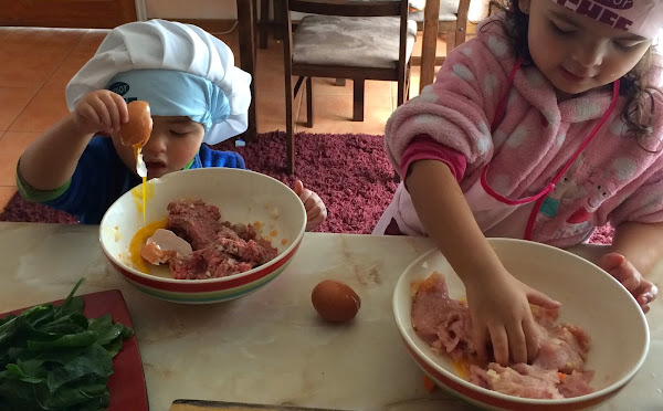 Sólo la mitad de las espinacas se la agregamos a la carne de vacuno para que no se note