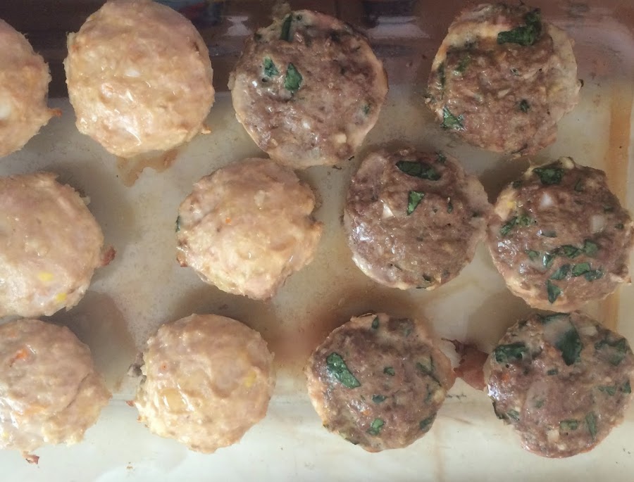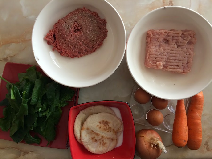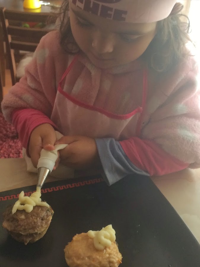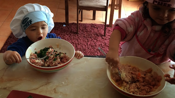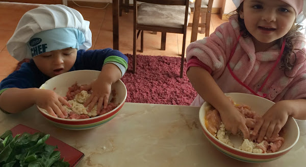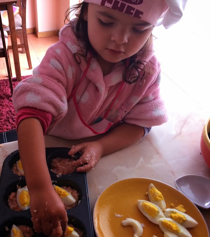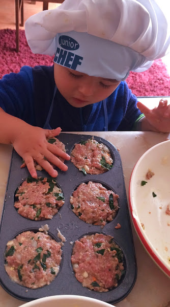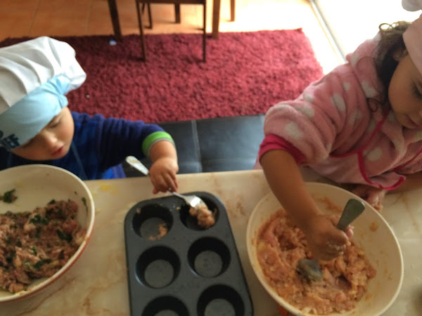 Hoy es domingo y nos levantamos tarde con mis niñitos, hace frío y es medio día, aun estamos en pijama. Hoy quería cocinar algo simple. Mire el refrigerador y tenía dos bandejas descongeladas 1 de carne (vacuno) molida y la otra de molida de pavo. Pensé en un asado alemán, hace mucho tiempo que no cocinaba eso, es fácil de cocinar, sano y muy rico. Busqué el molde y estaba demasiado estropeado. Sólo tenía los moldes de cupcake y dije.. Por que no? Entonces llame a mis niñitos y nos pusimos a cocinar...