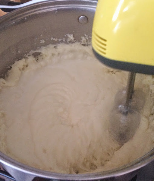 Escurrir el agua, sin apagar la cocina agregar a la olla una cucharada de mantequilla, batir con batidora de preferencia para que la textura sea más suave. Agregar 2 vasos de leche y corroborar la sal.
