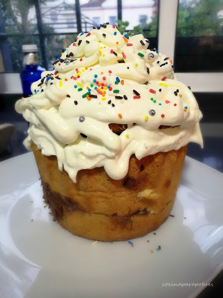 Repartimos la masa en los moldes de cupcake gigante previamente engrasado y horneamos con el horno precalentado a 180º C aproximadamente 50 minutos o hasta que al pinchar con un palillo en el centro este salga limpio.