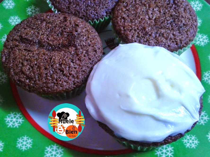 3.- Preparamos la crema. Batimos el queso con el azúcar glas y el azúcar de vainilla, guardamos en la nevera y dejamos que repose unos 15 minutos. Untamos buttercream sobre cada pastelito.