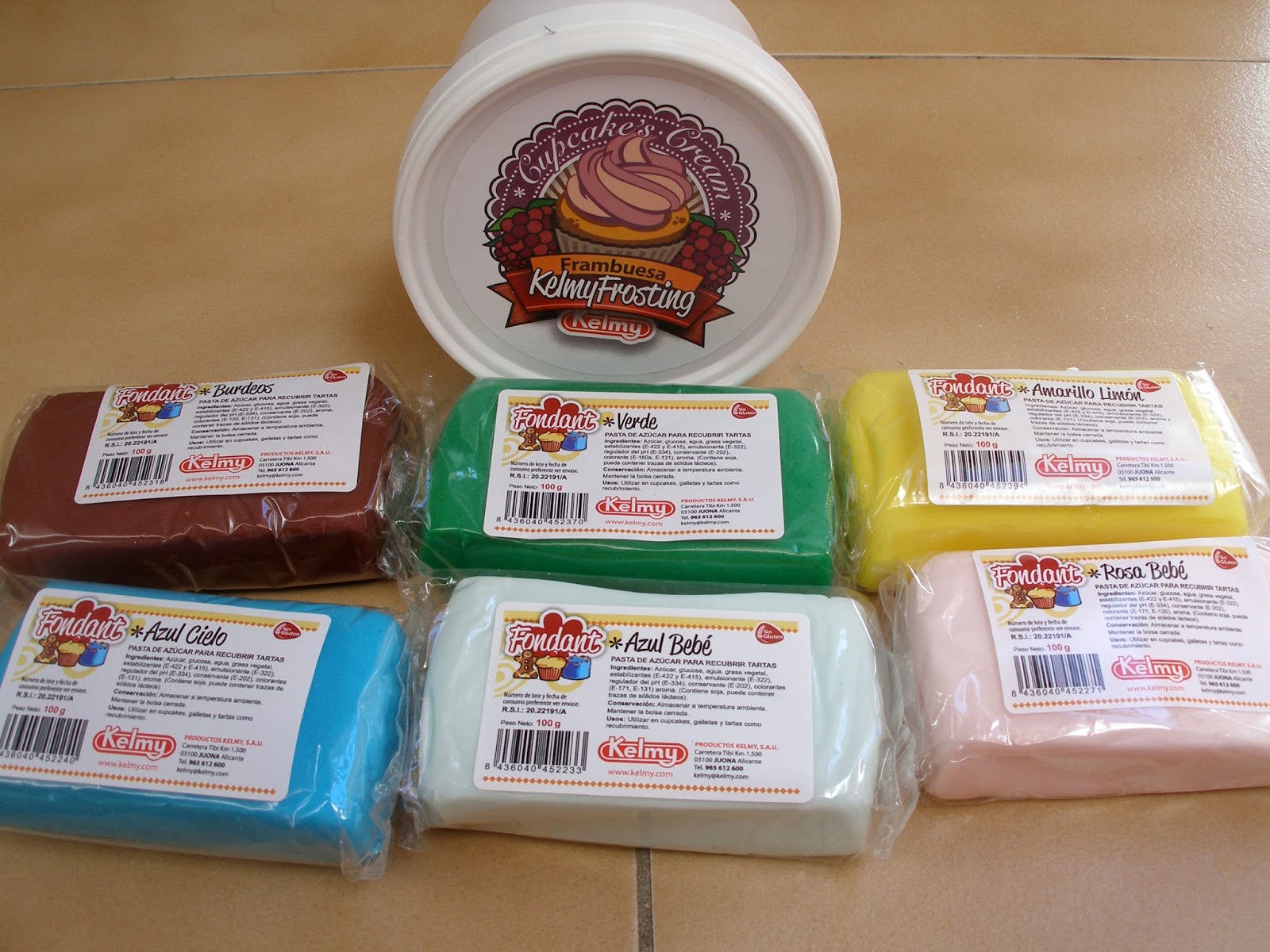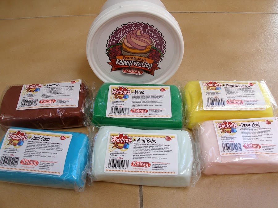 Es la primera vez que pruebo los productos Kelmy y me han gustado mucho. El frosting sirve tanto para adornar como para rellenos, yo lo puse también debajo del fondant y si no te quieres marear haciéndolo es perfecto, los hay de muchos sabores. El fondant es muy moldeable, ya veis como pude hacer la rosa y sin cmc además seca muy pronto. Los puedes comprar en tamaño mini de 100g que veo que es muy cómodo para comprar los muchos colores que tienen.