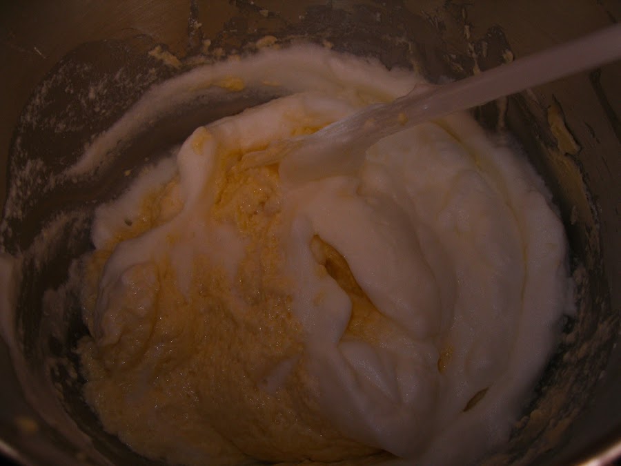Batir la mantequilla con el azúcar hasta que quede cremosa, agregar las yemas de los huevos, seguir batiendo e incorporar el aroma de tarta de queso. Tamizar juntos la harina, la maicena y la levadura en polvo y añadir a la mezcla. Batir las claras a punto de nieve y agregarlas a la preparación mezclando suavemente con una espátula.