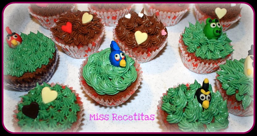 Hola chic@s!! Ya se acercan las fiestas!! Ya queda nada para la Navidad y bueno antes de que llegaran estas fechas tan familiares quería darle una pequeña sorpresa a mi chico. Y ya que le gusta tanto el juego de los Angry Birds pues que mejor que unos cupcakes con esos simpáticos pajaritos! La verdad es que yo también me he puesto a jugar a ese dichoso juego y he acabado picándome con esos pajarracos a los que debes derribar jajajajaja