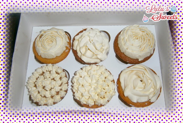 Y cogemos nuestra manga pastelera, colocamos la boquilla que más nos guste y a decorar estos deliciosos cupcakes!!! (no se vale comérsela a cucharadas jejejeje)..