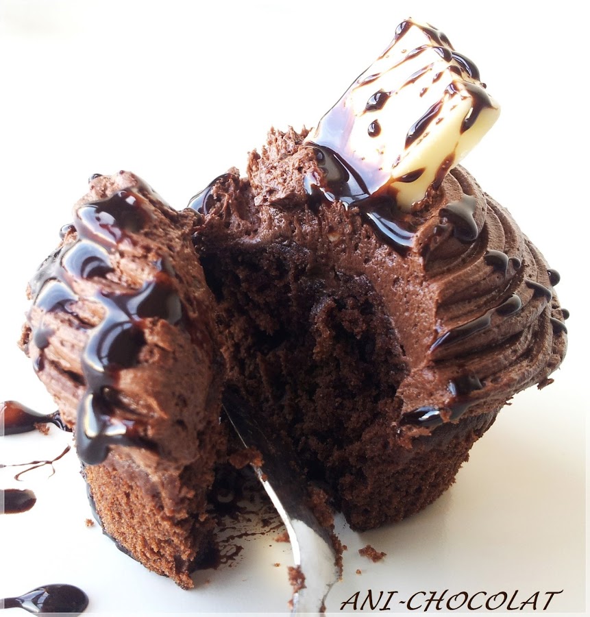 Precalentamos el horno 160ºC con ventilador arriba y abajo. Ingredientes húmedos: Mezclamos con unas varillas manuales el azúcar y el aceite de oliva, hasta que se integren. Vamos echando los huevos de uno en uno, removemos bien. Ingredientes secos: tamizamos juntas la harina, la levadura y el cacao. Poco a poco, vamos incorporando los ingredientes secos a los húmedos. Por último, echamos la leche y removemos. Agregamos la maizena y removemos de nuevo. La masa ya está lista. Colocamos la mezcla en cada cápsula, recuerda echar un poco más de la mitad en cada una. Los tendremos unos 20 minutos aprox, dependerá de cada horno, quizá puedes tenerlos un poco antes. Cuando estén listos, los dejamos unos 2 minutos dentro de los moldes, y luego los pasamos a una rejilla hasta que enfríen. Mientras preparamos el buttercream, con una batidora mezclamos la mantequilla con el azúcar glass hasta que se integren bien, echamos el cacao, mezclamos, y por último la leche. Sabremos que está listo cuando obtengamos una consistencia apta para manga pastelera.