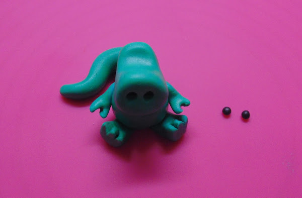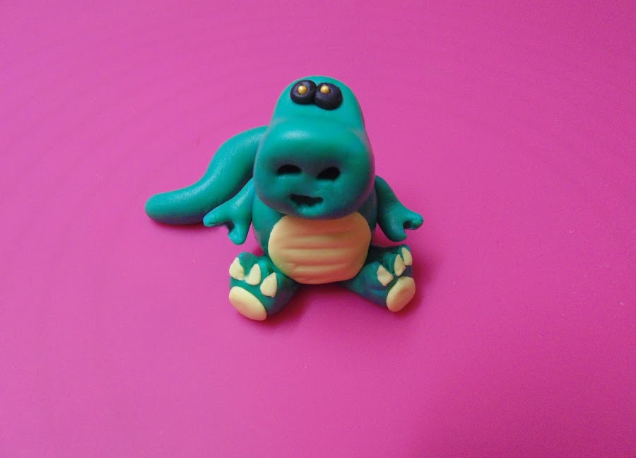 Para decorarlos estiramos un poco de fondant de color rojo, cortamos con un cortapastas redondo del tamaño apropiado y cubrimos el cupcake, procurando que el fondant llegue bien a los bordes del molde de papel. Sobre el fondant podemos poner el diseño que más nos guste, pero como hoy es Sant Jordi, toca un dragón y unas rosas. Para ver como se hace el dragón, que parece complicado, pero es muy fácil, os dejo unas fotos paso a paso y os comento que para unir unas piezas con otras va muy bien tener un poco de pegamento comestible, pero si no lo tenemos también podemos apañarnos con agua que aplicamos en poca cantidad con un pincel. Para unir la cabeza y asegurarnos de que no se cae, es mejor poner un palillo de madera.