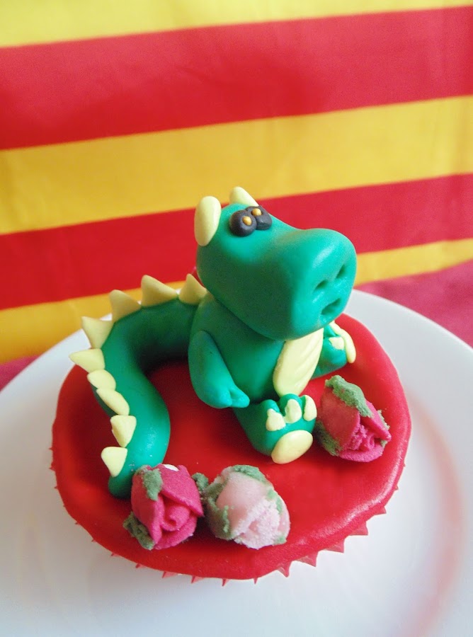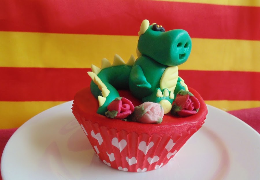 Ya os he comentado más de una vez que una de las fiestas más bonitas que tenemos en Barcelona es la de Sant Jordi. Por eso no puedo evitar preparar siempre alguna cosa especial por estas fechas. Pero me pilla con poco tiempo… ¿Qué puedo hacer? Algo sencillo y vistoso: unos cupcakes de vainilla, decorados con dragones. Puede sonar complicado, pero no hay nada más fácil para introducirse en el tema de decorar cupcakes, que hacerlo con fondant… en serio, hacedme caso…