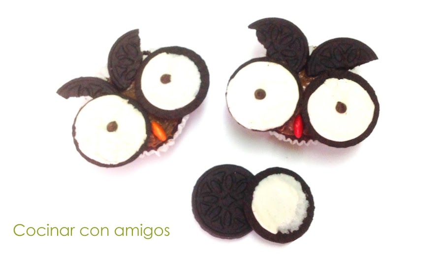 Sigo preparando una selección de platos sobre Halloween, esta vez preparé estos cupcakes búho para llevárselos a mis sobrinas que vinieron a pasar unos días.