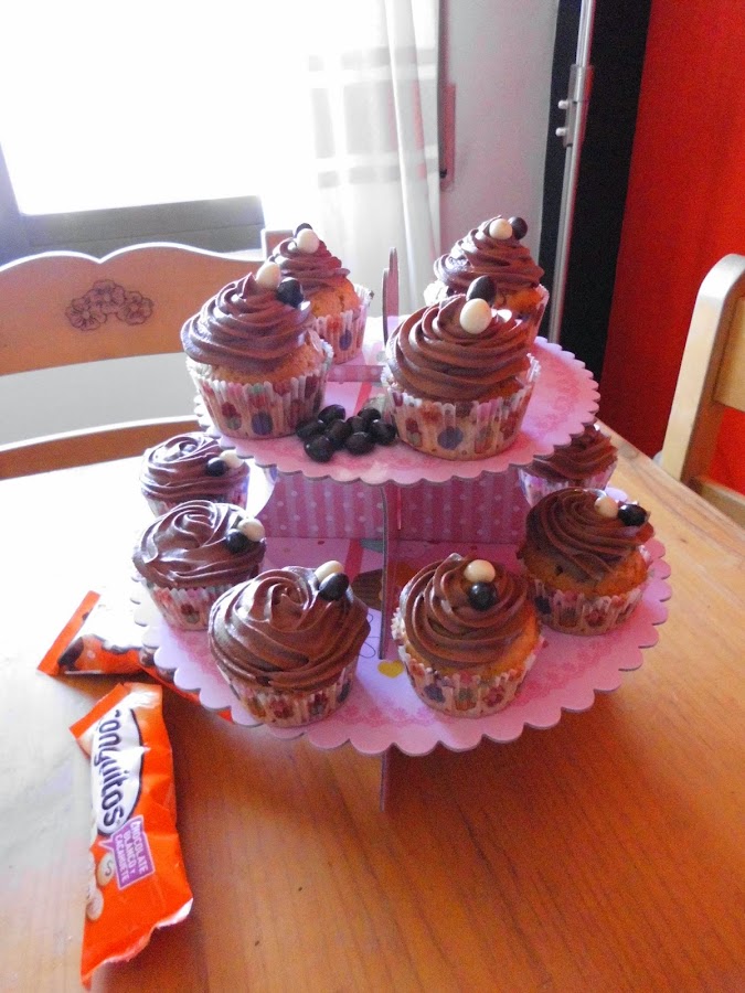Decorar los cupcakes con el ganache y unos conguitos por encima