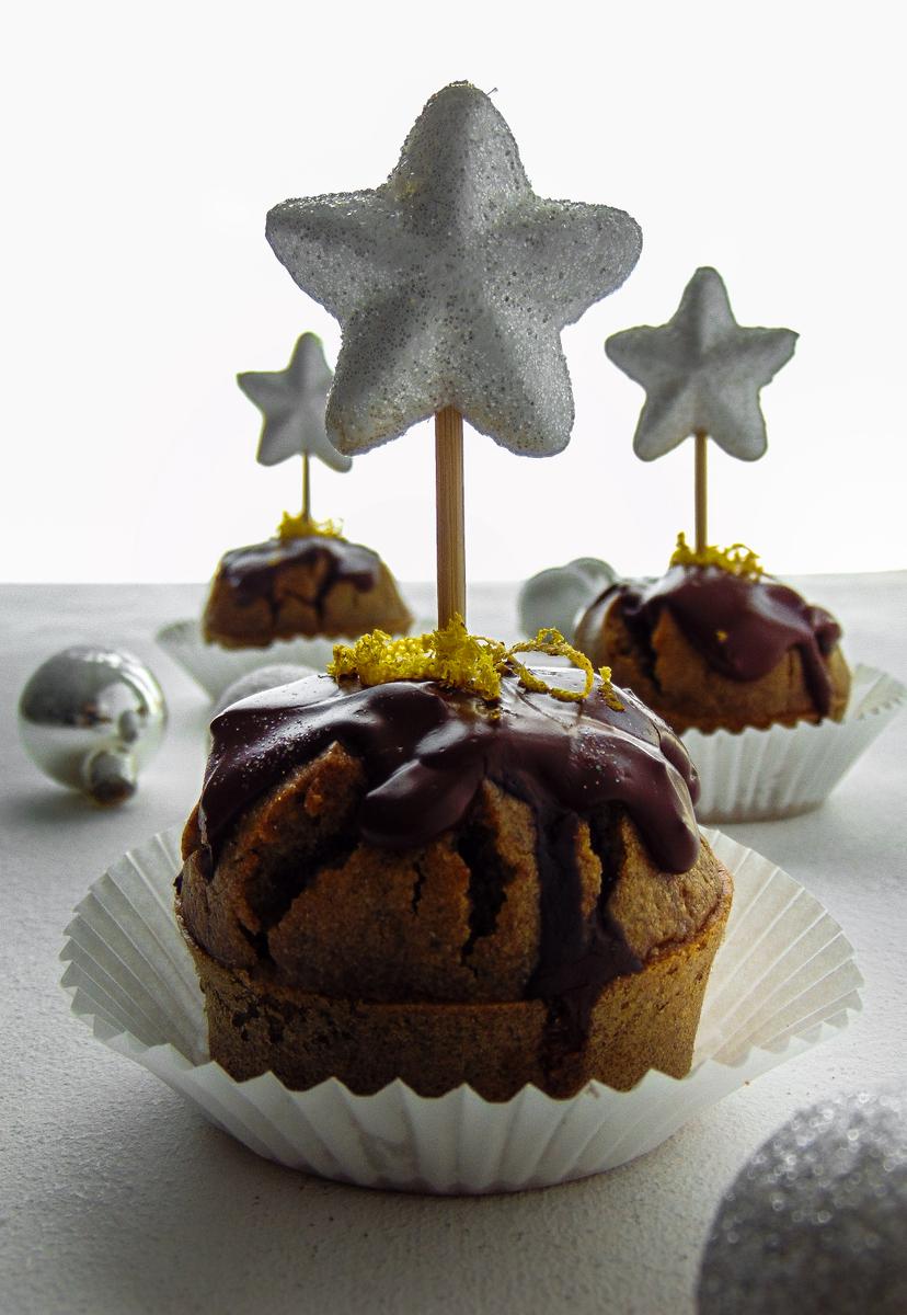 La masa de estos cupcakes queda muy esponjosa y húmeda, con sabor a almendras y un leve toque de naranja, y el remate perfecto que es el glaseado cremoso de chocolate amargo. Sabores y olores estos que nos siguen recordando a la Navidad que ya se nos va.