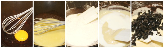 Añadiremos la harina junto con la sal, tamizada, en dos veces, intercalándola con la leche, es decir, mitad de harina, leche y la otra mitad de la harina. Mezclamos hasta que quede totalmente incorporado.