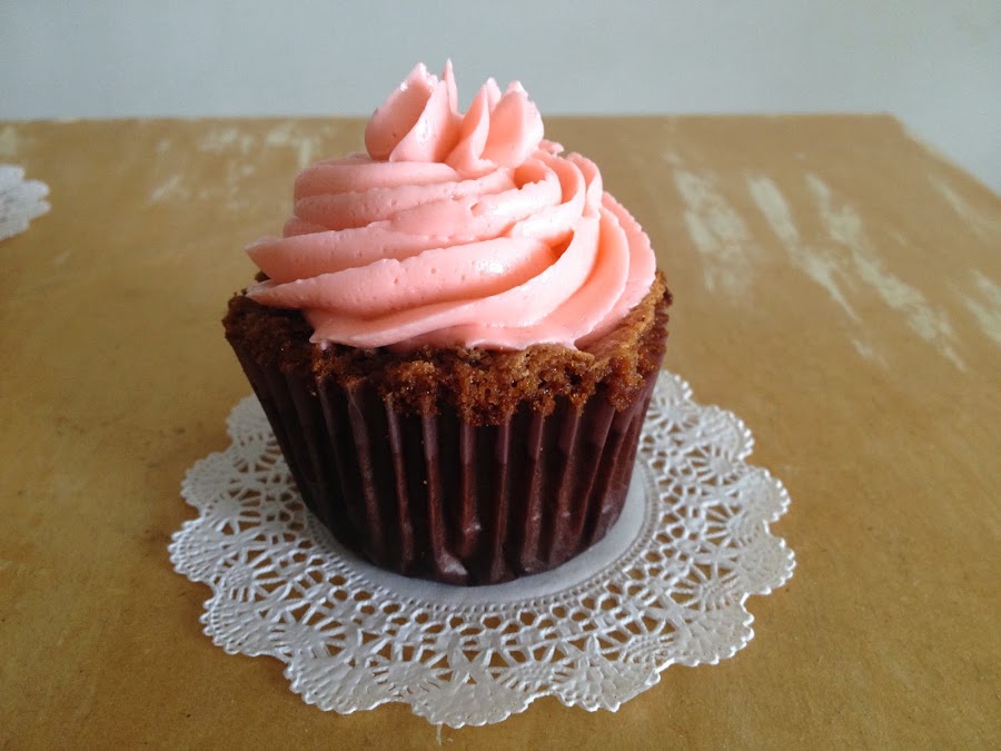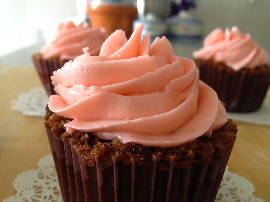 Una combinación que nunca falla es fresas con chocolate. Mi versión: unos deliciosos cupcakes de brownie súper húmedos con una buttercream de fresa muy cremosa.
