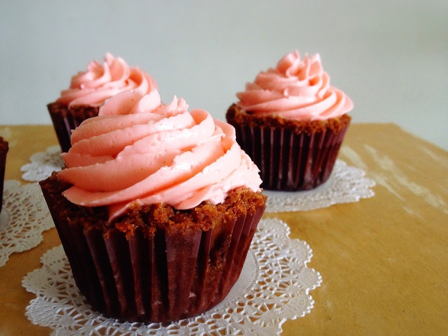 Una combinación que nunca falla es fresas con chocolate. Mi versión: unos deliciosos cupcakes de brownie súper húmedos con una buttercream de fresa muy cremosa.