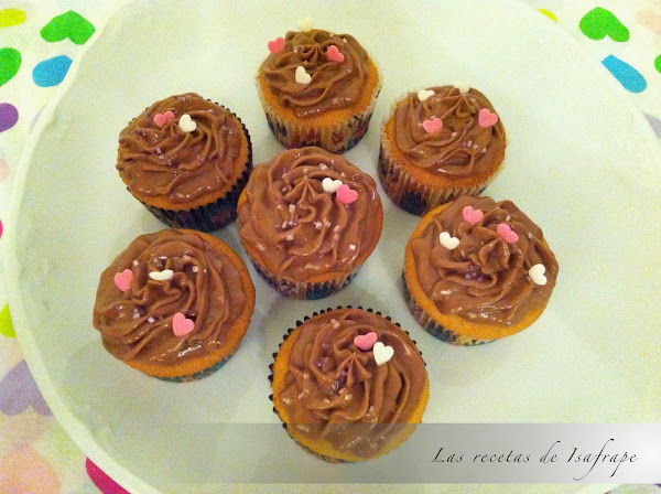 Vamos a preparar la buttercream: mezclamos la mantequilla con el icing sugar o azúcar glas tamizada. Añadimos la Nutella y volvemos a mezclar. Llenar la manga pastelera y decorar. Si vemos que está muy líquida meterla unos minutos en el frigorífico pero no demasiado para que no se solidifique.
