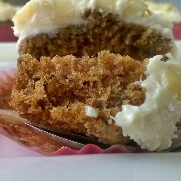 Para hacer esta receta he modificado la receta de "Lemon Zucchini Cupcakes" de DeNikatessen.