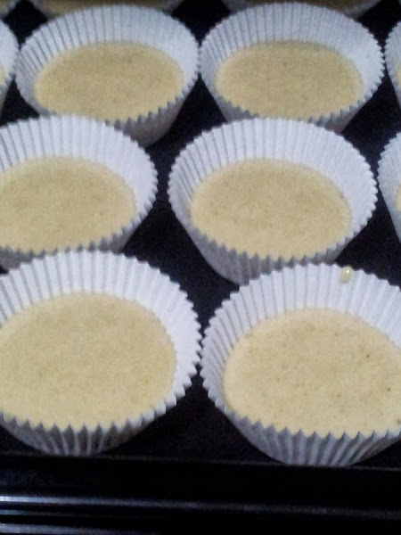 Para finalizar vamos rellenando con la masa los papelillos de las magdalenas hasta 2/3 de su capacidad, os podéis ayudar con una cuchara, una manga pastelera o en mi caso con el sacabolas de los helados, que me resulto muy útil casi tenia la medida para el relleno de los papelitos.