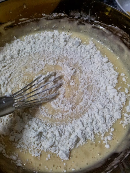A la masa obtenida, añadiremos la de la harina, poco a poco, hasta que ésta, se integre correctamente en la mezcla para hacer nuestros cupcakes de calabaza.